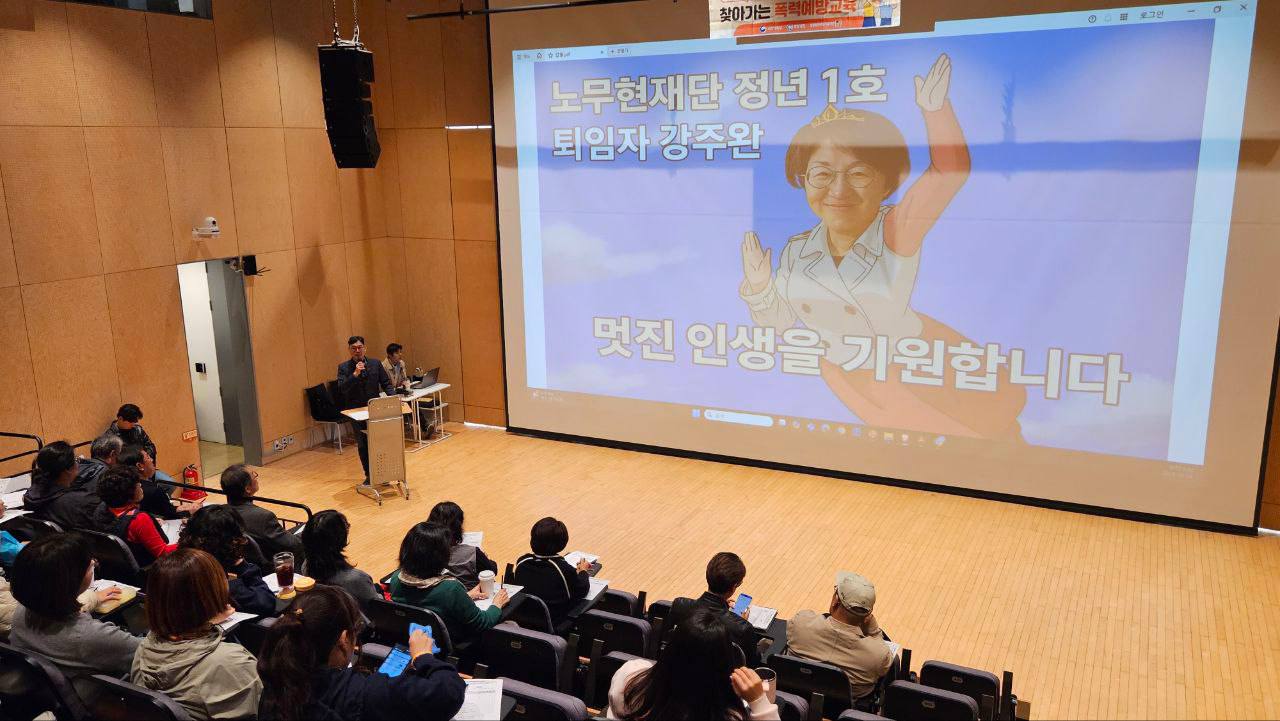 | 지난주, 봉하마을에서는 재단의 첫 정년퇴직자이신 강주완님을 따뜻하게 보내드렸어요. 15년 동안 재단의 시간을 함께 쌓아온 주완님의 이별 인사는 오히려 우리 모두에게 위로가 되는 것 같아요.