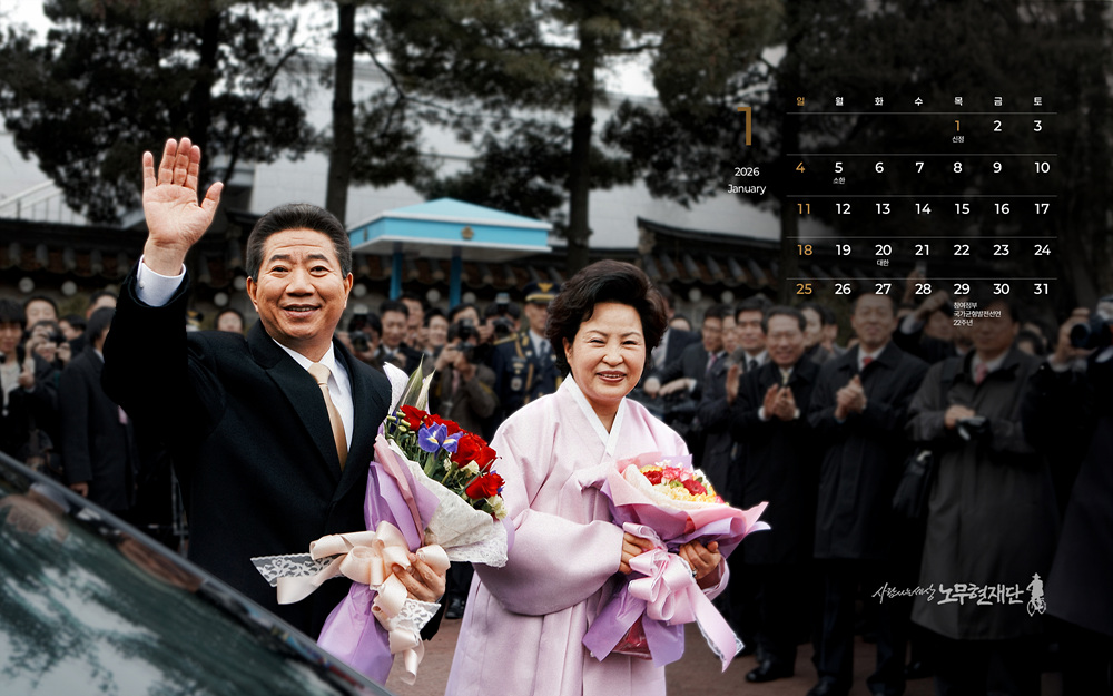 2026년의 바탕화면은 여러분의 투표로 선정된 달력 사진을 활용하여 제작할 예정입니다. 새해 첫 사진에는 퇴임날 따뜻한 환송을 받으며 청와대를 떠나는 대통령 내외의 모습이 담겼습니다💐